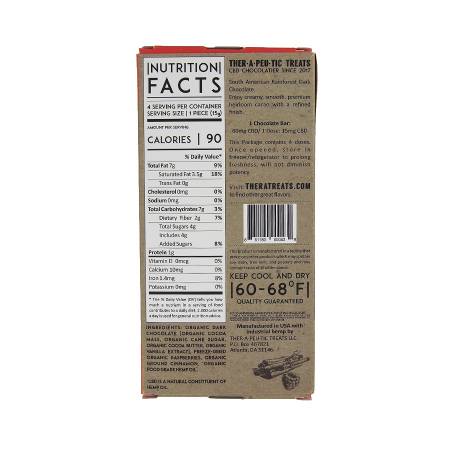 Therapeutic CBD Chocolate – Raspberry Cinnamon (Dark Chocolate) 2.5oz, 60mg CBD